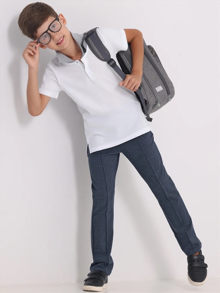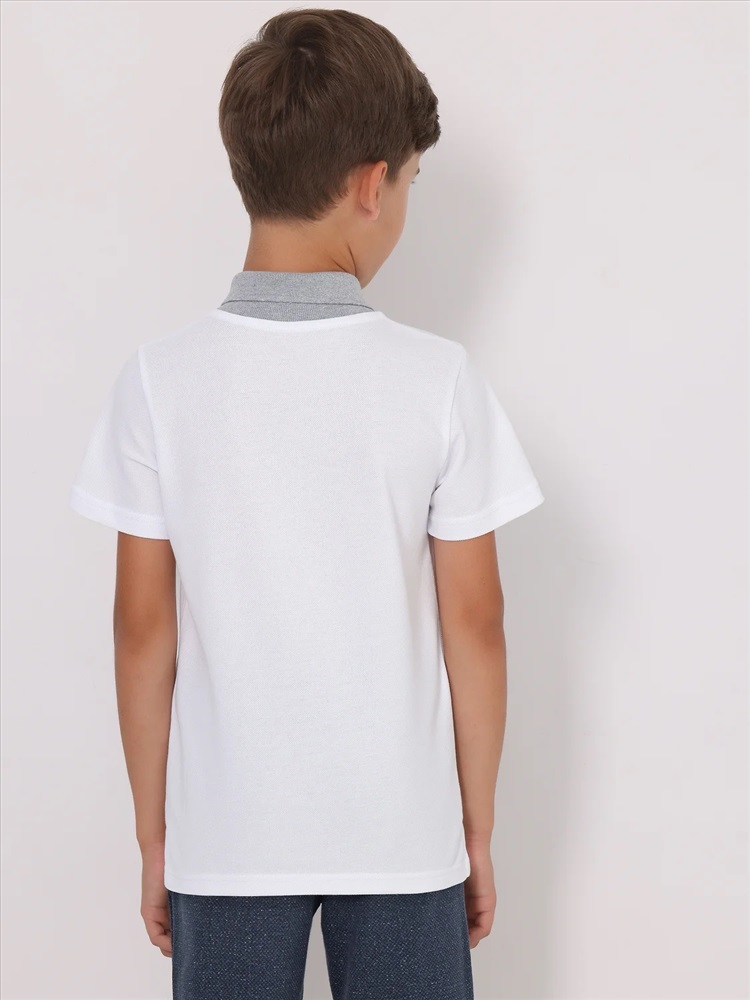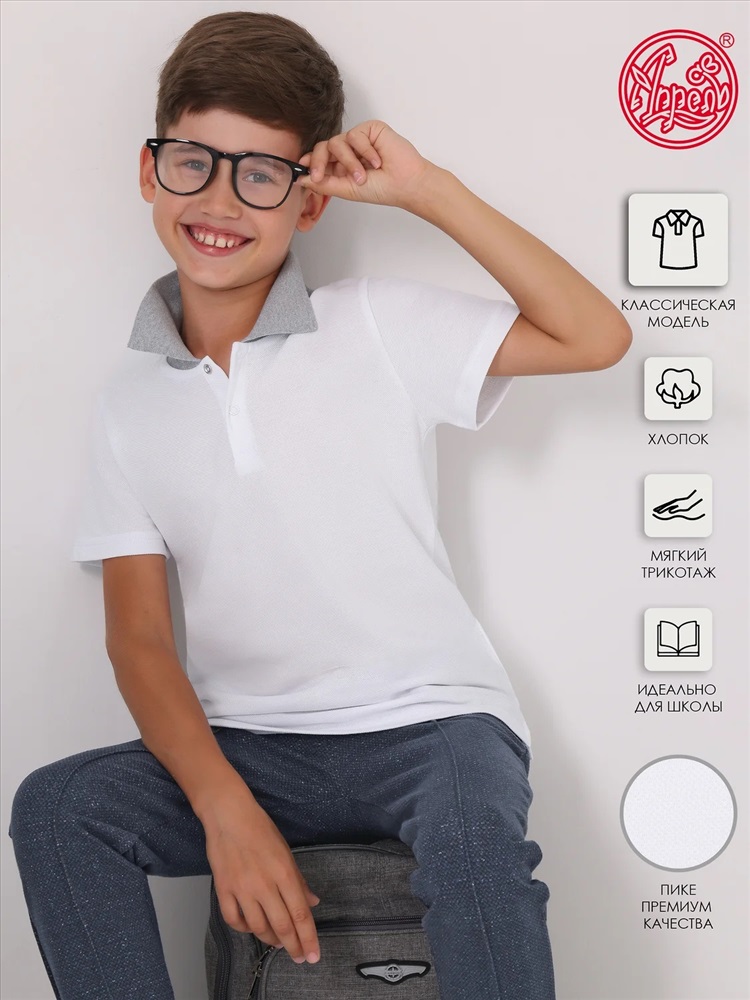 Футболка-поло для мальчика выполнена из хлопкового полотна. Изделие с короткими рукавами и с застежкой на кнопки. Отличный вариант для школы! Уход: только машинная стирка (руками не стирать!) при температуре 40 градусов, без предварительного замачивания.