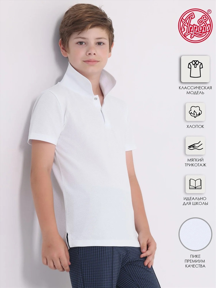 Футболка-поло для мальчика выполнена из хлопкового полотна. Изделие с короткими рукавами, с застежкой на пуговицы. Отличный вариант для школы! Уход: только машинная стирка (руками не стирать!) при температуре 40 градусов, без предварительного замачивания.