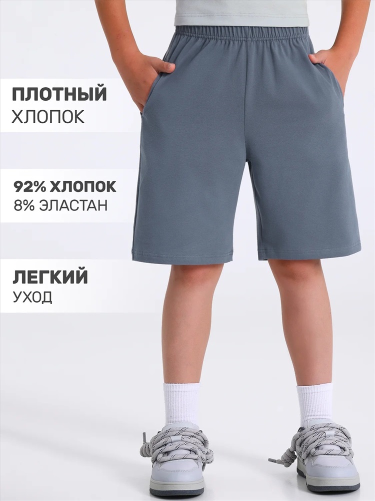 Шорты для мальчика выполнены из кулира - легкого хлопкового набивного полотна с лайкрой. Изделие длиной до колена, с удобными карманами в боковых швах. Уход: только машинная стирка (руками не стирать!) при температуре 40 градусов, без предварительного замачивания.