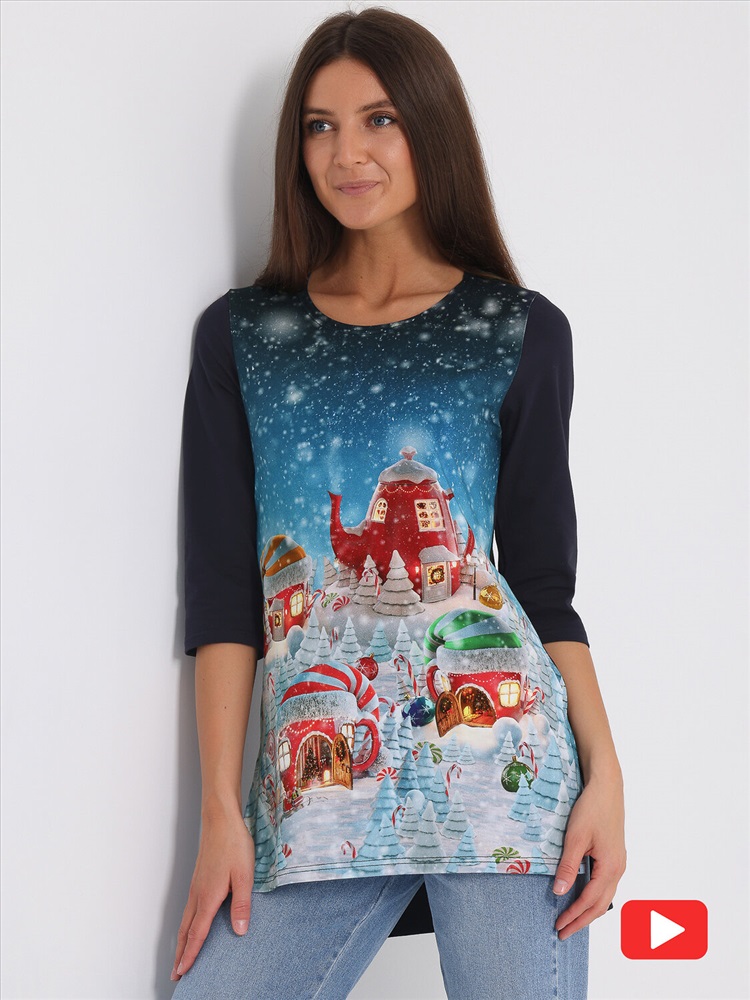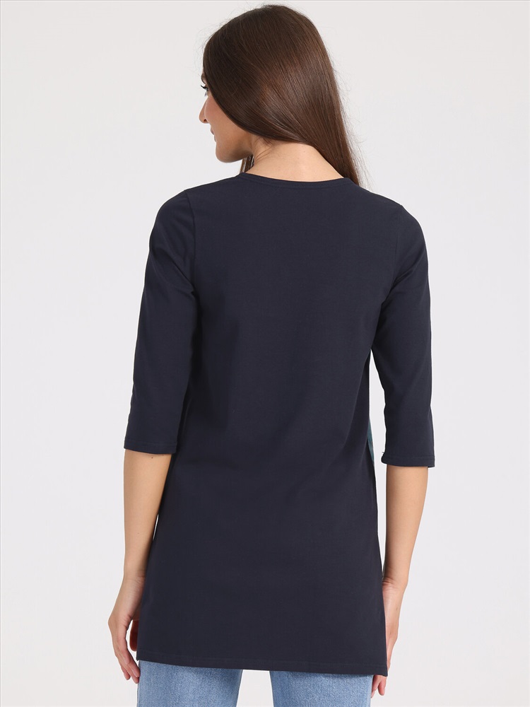 Стильная туника выполнена из легкого хлопкового полотна с добавлением лайкры. Изделие с рукавами 3/4, округлым вырезом горловины. Отличный вариант на каждый день! Уход: только машинная стирка (руками не стирать!) при температуре 40 градусов, без предварительного замачивания.
