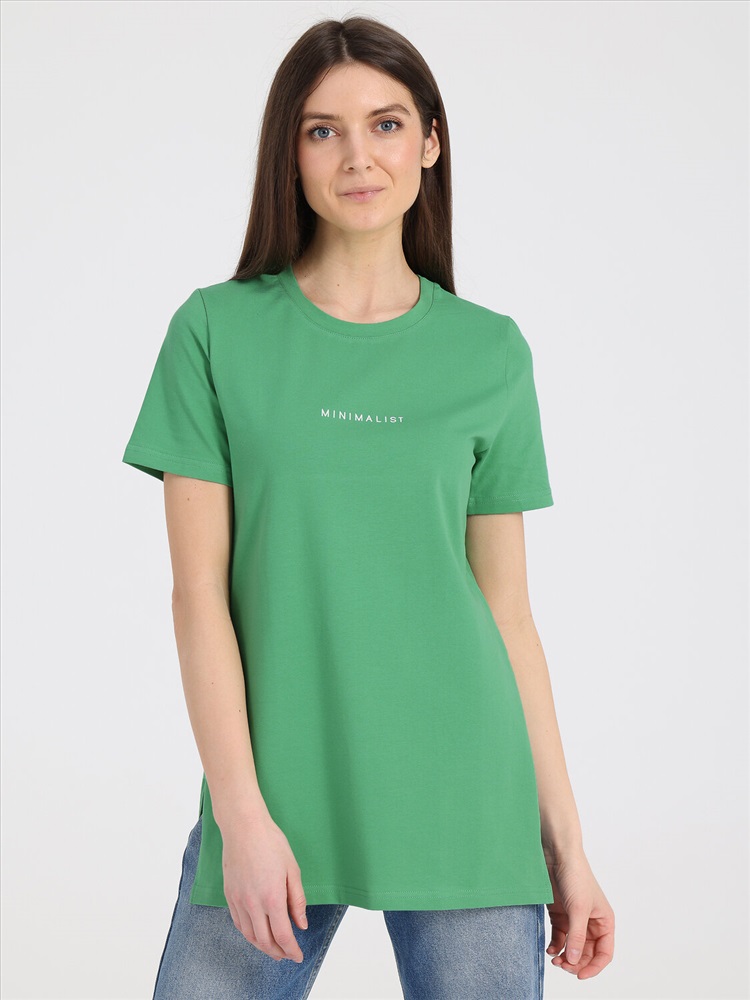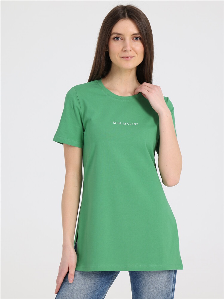 Стильная женская туника выполнена из кулира - легкого хлопкового полотна с лайкрой. Изделие прямого покроя и свободного силуэта, с короткими рукавами и разрезами по бокам до талии, урашено небольшим принтом. Отличный вариант на каждый день! Уход: только машинная стирка (руками не стирать!) при температуре 40 градусов, без предварительного замачивания. Изделия с печатью и декором перед стиркой необходимо вывернуть на изнаночную сторону.