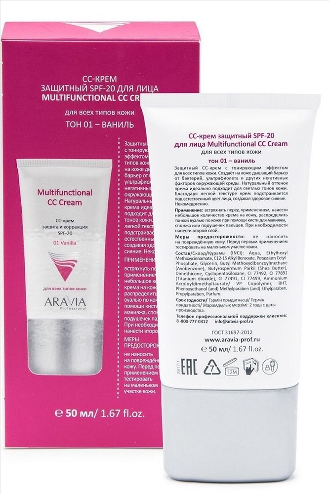 Защитный СС-крем с тонирующим эффектом для всех типов кожи. Создаёт на коже дышащий барьер, который защищает от бактерий, ультрафиолета и других негативных факторов окружающей среды. Ванильный оттенок крема идеально подходит для светлых тонов кожи. Благодаря лёгкой текстуре подстраивается под естественный цвет лица, создавая здоровое сияние. Удобная компактная упаковка не займёт много места в сумке. Пользуйтесь средством каждый день и берите с собой в поездку. Особенности: для кожи светлых оттенков. После нанесения подстраивается под тон кожи. Лёгкая текстура, которая не забивает поры. Компактная упаковка. Назначение: коррекция тона кожи, защита от УФ-излучения. Рекомендации для использования Профессиональный уход: заверщающий этап салонного ухода. Домашний уход: ежедневный уход за кожей. Способ применения Встряхнуть перед применением, нанести небольшое количество крема на кожу, распределить тонкой вуалью по коже при помощи кисти для макияжа, спонжа или подушечек пальцев. При необходимости нанести второй слой. Состав Биоактивный состав: масло ши. Aqua, Ethylhexyl Methoxycinnamate, C12-15 Alkyl Bensoate, Potassium Cetyl Phosphate, Glycerin, Butyl Methoxydibenzoylmethane (Avobenzone), Butyrospermum Parkii (Shea Butter), Dimethicone, Cyclopentasiloxane, CI 77492, CI 77891, CI 77491, CI 77499, Ammonium Acryloyldimethyltaurate/VP Copolymer, ВНТ, Phenoxyethanol (and) Methylparaben (and) Ethylparaben (and) Propylparaben, Parfum.