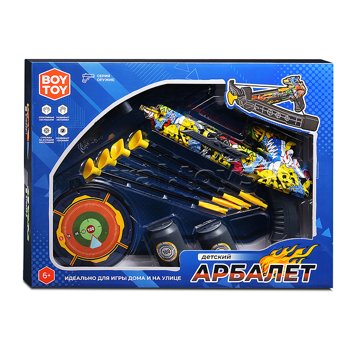 Код: 483696 Штрихкод: 4630432203432 Страна производитель: Китай Размеры упаковки: 42 x 6 x 32 см Количество в коробке: 24 • В наборе: - арбалет с лазерным целеуказателем (32.5х28х16 см.) - 4 стрелы с присосками (20.5 см.) - картонная мишень (13х13 см.) - 2 банки (4.5х4.5х6.5 см.) • Лазер работает от 3-х батареек "LR1130" (входят в комплект для демонстрации) • Материал: пластик. • Соответствует требованиям безопасности продукции. • Для детей от 6 лет. Комментарии к товару
