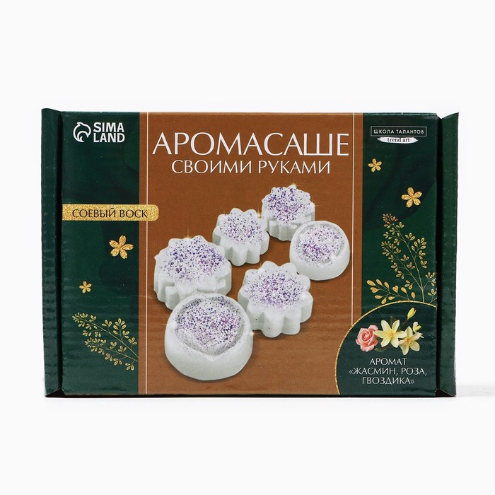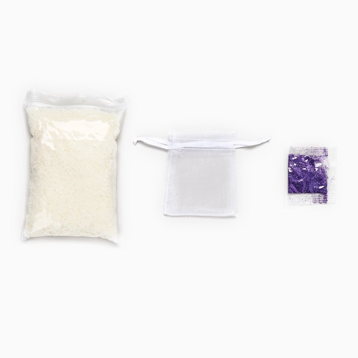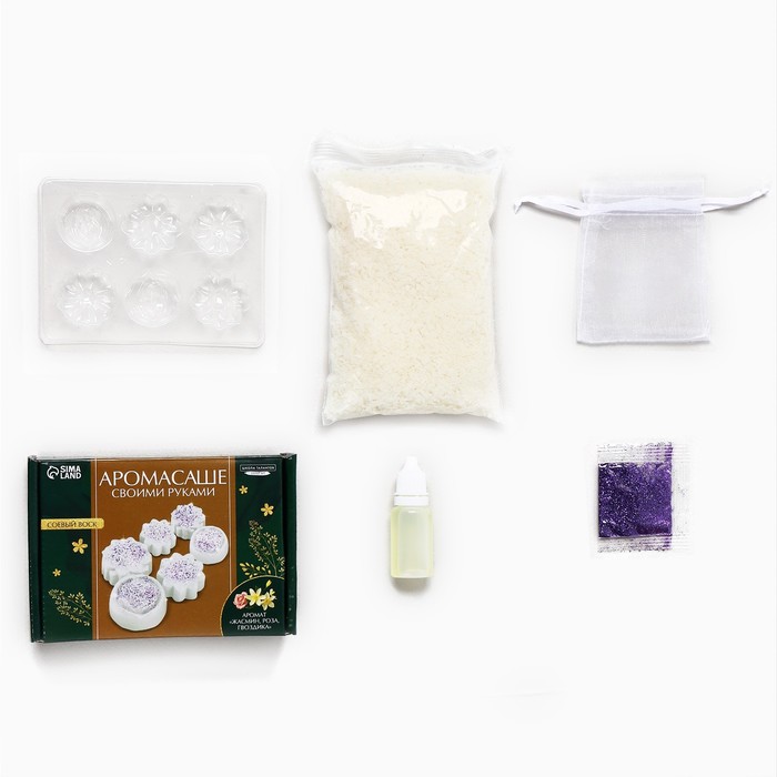 Соевый воскПластиковая формаАроматизатор «Жасмин Роза Гвоздика»Мешочек из органзыБлёсткиХлопковый фитиль 20 смКак сделать аромасаше: