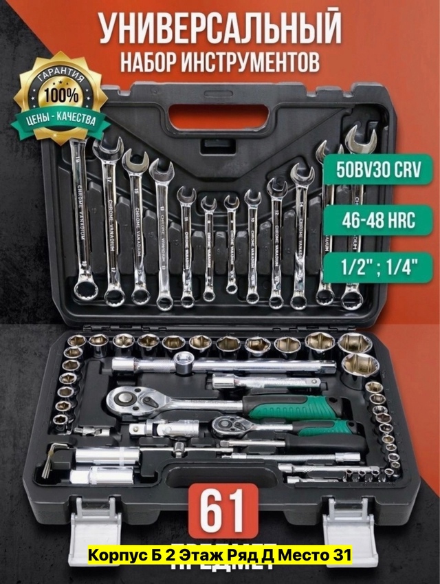 Цена штучно: 2400руб Цена оптом: 2200руб (упак. 5шт=11000руб) Набор инструментов, металл Для мужчин и для женщин Размеры 25 Набор из инструмент на 61 предмет