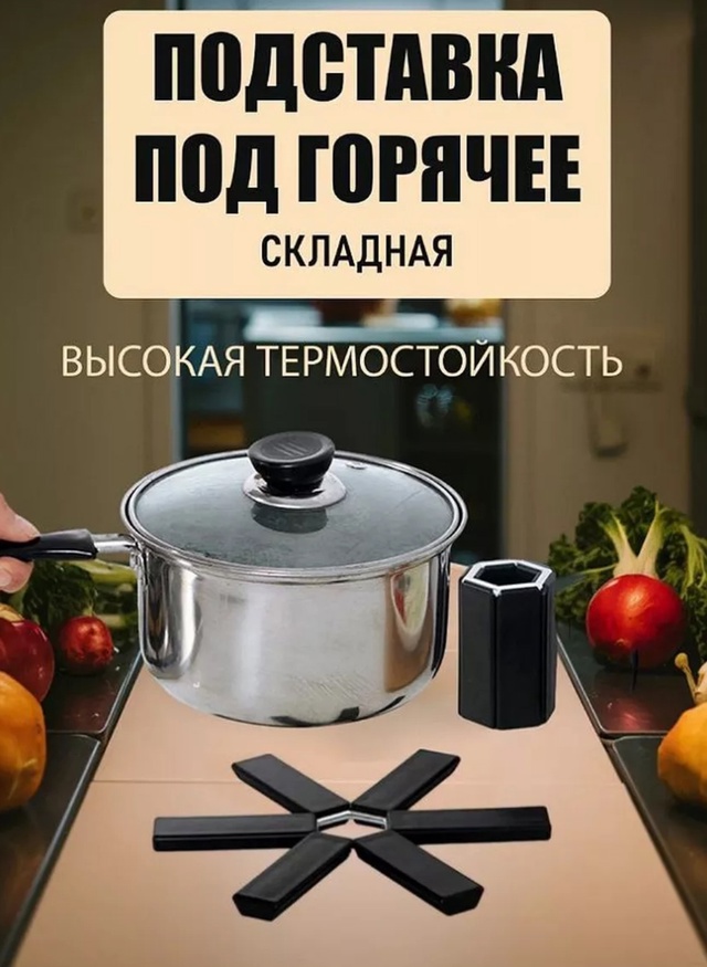 Складная подставка под горячее - это отличная помощница для кухни, она защитит поверхность стола и скатерть от пятен и повреждения.