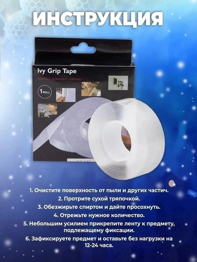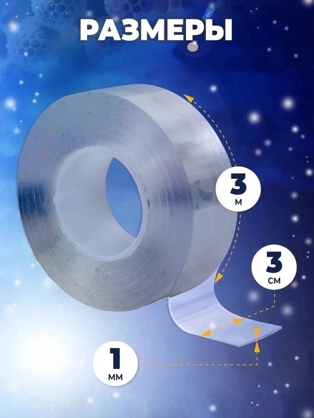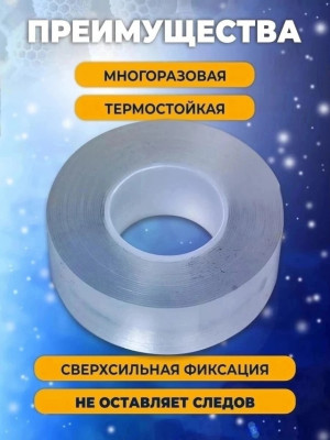 это универсальная самоклеящаяся канцелярская лента, предназначенная для различных задач в офисе, школе, дома и даже в автомобиле. Изготовленная из прозрачного полипропилена, она обладает двухсторонним клеевым покрытием, которое надежно фиксирует любые материалы на поверхности, включая пластик, стекло, дерево и металл. Крепкая, гибкая и эластичная, отличается высоким качеством, стойкостью к воде и широким спектром применения. Она может быть использована для крепления и хранения предметов в ванной комнате, кухне или других помещениях. Благодаря своей прозрачности, в меру толстая и узкая, не нарушает эстетичный вид интерьера, а наоборот, поможет создать аккуратность и порядок в Вашем пространстве. Водонепроницаемая, герметичная и термостойкая силиконовая нанолента подойдет как бордюр для ванны и кухонной мойки. Водостойкие свойства делают ее эффективной в заклеивании и герметизации невидимых стыков и швов. Кроме того, бордюрная клеящая nano лента является отличным выбором канцтоваров для рукоделия и творчества школьников, создания офисных проектов и школьных поделок. Многоразовый полипропиленовый наноскотч хорошее решение для временной фиксации автомобильных принадлежностей к панели, оформления декора на стену. Липкий и супер прочный, приклеит надувные шары, при этом не оставляя после себя следов. Также подходит для надувания пузырей, с помощью него можно повторить популярный тренд тик тока - мягкие шарики антистресс. Забудьте о ненадежной канцелярии, двойной гелевый нана фиксатор на клейкой основе станет Вашим помощником в заклейке окон, ремонте и любых крепежных и строительных работах.