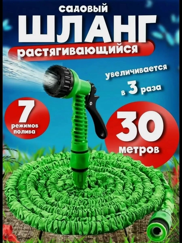 Растягивающийся садовый шланг - это удобный и практичный инструмент для полива вашего сада или огорода. Он может быть растянут в 3 раза, что позволяет достичь дальних уголков вашего сада без проблем. Компактный размер шланга в сложенном виде занимает мало места, что делает его идеальным выбором для хранения в доме или гараже. Износостойкий гофрированный материал наружной трубки из нейлона, надежные крепления и латунные наконечники обеспечивают долговечность и надежность поливочного шланга. Рабочее давление шланга составляет 2-6 атмосфер. К шлангу также прилагается распылитель с 7 режимами работы, что позволяет настроить полив под ваши потребности. Насадка с переключением режимов придачи воды позволяет выбирать между струей, душе, туманом и капельным поливом для правильного полива различных культур. Это настоящее поливное чудо! Он легкий, мягкий и компактный. Вы сможете удобно хранить набор с пистолетом распылителем (пистолет-распылитель) под рукой среди садового инвентаря. В процессе эксплуатации, благодаря гибкости (гибкий) не образуются изломы и скручивания. Новое износостойкое внешнее покрытие сделало его более устойчивым к внешним воздействиям и загрязнениям. Он максимально универсален и прост в использовании и обслуживании, легко присоединяется к источнику воды. Отныне поливка станет только в радость!