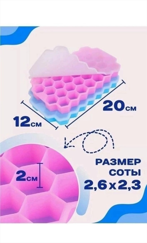 очень удобный и функциональный кулинарный аксессуар для кухни. Выполнен из силикона, мягкого и эластичного материала, который не впитывает запахи, очень прочный и из него можно достать лед без особых усилий. Многоразовая ледница соты с ячейками быстро и легко заморозит 37 аккуратных кубиков для коктейлей. Подходит также под приготовление шоколадных изделий, конфет - мармеладок и фрикаделек. Ее можно использовать не только для заморозки воды, но и для замораживания любых напитков, соков и соусов, а также для кондитерских целей. Крышечка защищает от проваливания и позволяет ставить формы друг друга в морозилке холодильника.