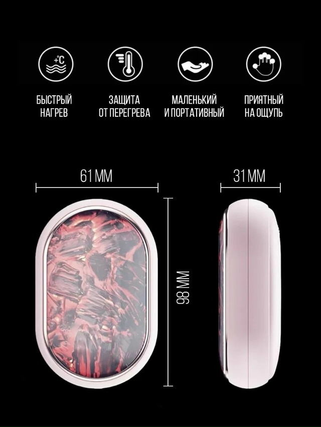 является идеальным и оригинальным решением для активного зимнего отдыха. Грелка начинает согревать ваши руки через 5 секунд после включения. Для включения достаточно нажать на несколько секунд кнопку на корпусе. Она имеет 3 режима нагрева. Двойное нажатие на кнопку меняет режим картинки, она может быть либо статична, либо то затухать, то появляться в динамике. Идеальный выбор среди всех средств для обогрева рук на улице. Компактный размер позволяет брать ее с собой на прогулки, в дорогу, охоту и рыбалку. Грелка для рук создает достаточное количество тепла, чтобы обеспечить комфортную температуру на протяжении продолжительного времени. Грелка имеет односторонний нагрев. В комплекте имеется шнур для зарядки с USB разъемом. Такая грелка принесет тепло и уют в холодное время года. Она отлично подойдет в качестве подарка мужчине и женщине, детям и пожилым людям. Дарите родным и близким тепло. Не упускайте возможности насладиться теплом и уютом в любых условиях.