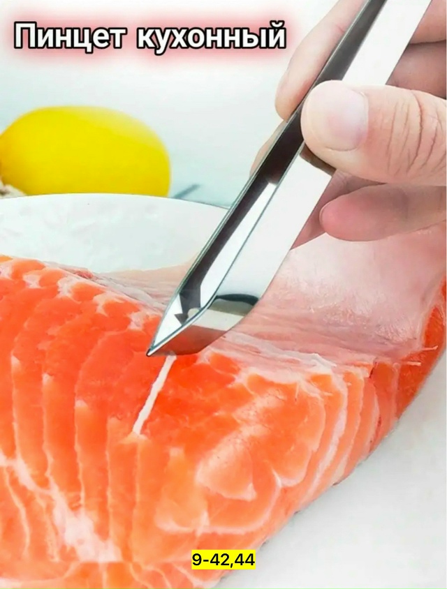 Кухонный пинцет поможет легко удалить кости из рыбы, чешую, оставшиеся перья с птицы. Скошенные края щипцов обеспечивают удобное вытаскивание костей любого размера из большой и мелкой, такой как: горбуша, сельдь, скумбрия и другая.