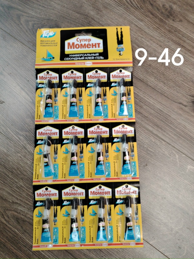 Цианоакрилатный клей Супер Момент 3г - быстро полимеризующийся, однокомпонентный цианакрилатный клей с низкой вязкостью. Предназначен для всех видов быстрых ремонтных работ в быту, в мастерской, в автомобиле, при конструировании моделей. Мгновенно склеивает в любых сочетаниях фарфор, керамику, дерево, кожу, резину, металл, пробку, картон, большинство пластиков. Не пригоден для полиэтилена, тефлона, стиропора, полипропилена и синтетических тканей. Поверхностная влага в меньшей степени влияет на скорость вулканизации, чем у других стандартных сортов CA.