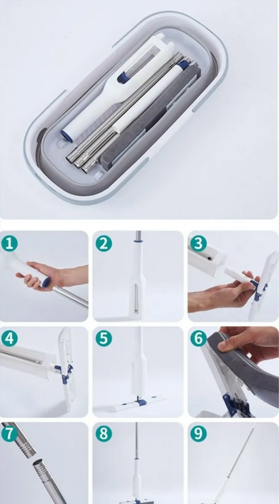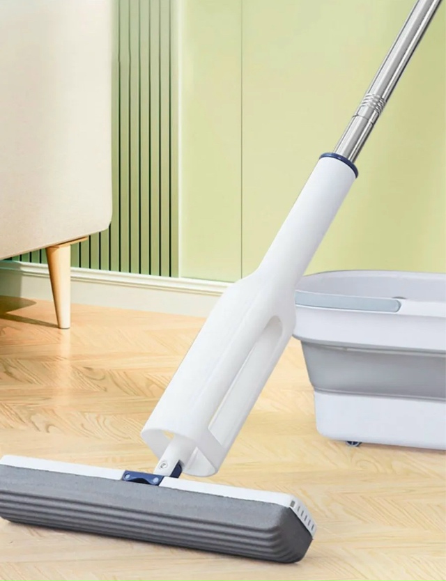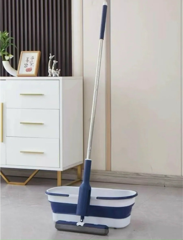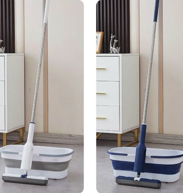 Набор для уборки со шваброй-отжимом и складным ведром - идеальный набор для уборки премиум-класса. Компактная швабра с запатентованным поворотным механизмом снимает нагрузку со спины и защищает руки. Отжим на ручке сольет лишнюю воду и грязь в ведро, а вращающееся на 360 градусов