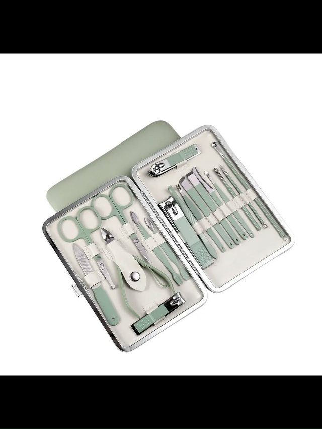 Удобный, многофункциональный набор для маникюра, педикюра и ухода за лицом. Данный набор отличает себя большим ассортиментом инструментов для маникюра, легкой возможностью взаимодействия с ними в любое время и в любом месте. С таким маникюрным набором Вы сможете делать себе идеальный маникюр, ведь все инструменты в наборе Вам в этом помогут. В маникюрно-педикюрном наборе имеется 18 различных инструментов: приспособления для кутикул, пилочка, ножницы, пинцет, накожница, кусачки для маникюра (как прямые, так и угловые), кусачки для педикюра и палочка, предназначенная для удаления прыщей и черных точек. С помощью них Вы преобразите ваши ногти и останетесь рады результатом. Изюминка набора - роскошный чехол со стильным дизайном из экокожи. С таким кейсом Вы сможете носить набор с собой в сумочке, что станет явным преимуществом при перелетах и поездках. Так же данный набор может стать отличным подарком к любому поводу.