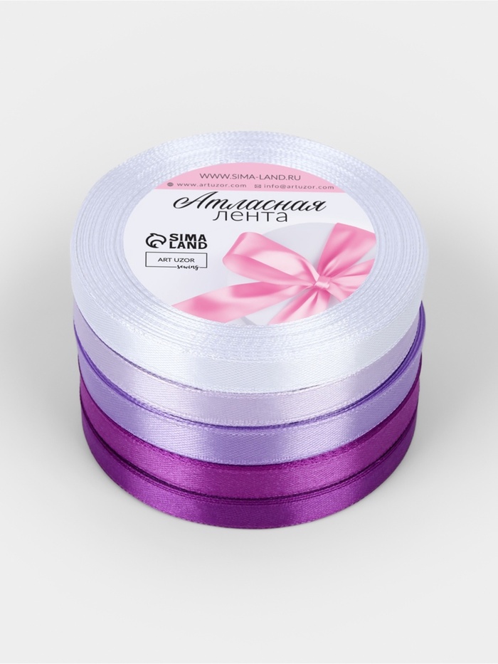 Атласная лента, набор 5 шт., 10 мм, 23±1 м, фиолетовая, сиреневая
