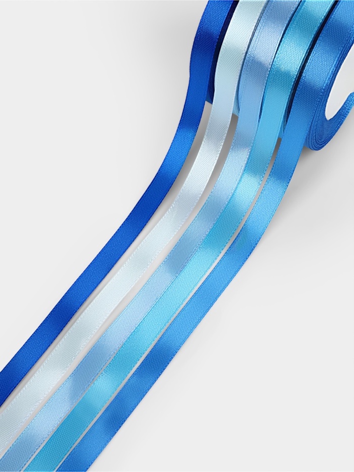 Атласная лента, набор 5 шт., 10 мм, 23±1 м, синяя, голубая