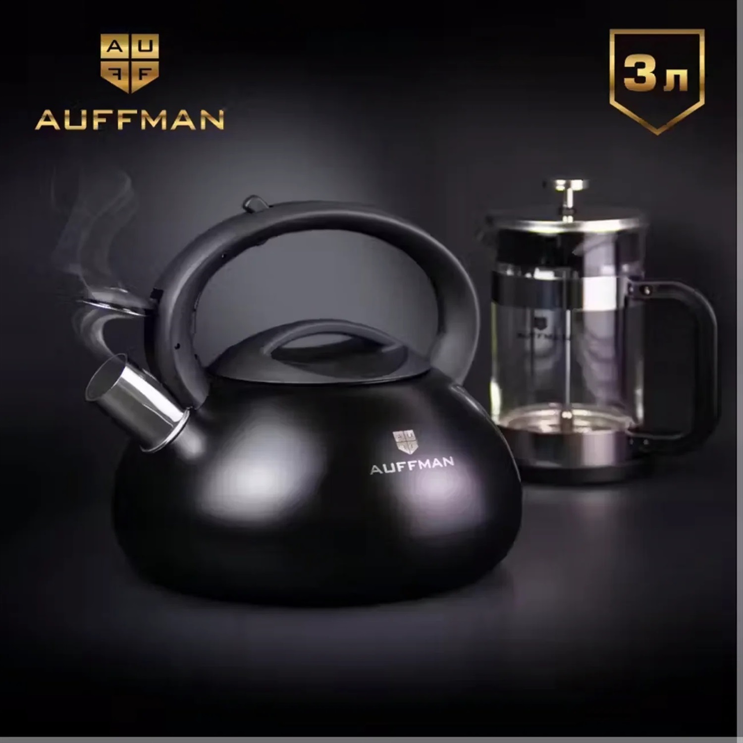 Надежный помощник на кухне - чайник со свистком AUFFMAN объемом 3 литра для всех видов плит из качественной нержавеющей стали. Толщина стенок 0,6 мм, дна - 6 мм. Удобный и стильный предмет кухонной утвари, который создаст уют и теплую атмосферу дома и на даче. Чайник с термосберегающим индукционным дном 16 см быстро нагревает воду и подходит для всех типов плит, включая индукционную. Широкое индукционное дно распределяет тепло равномерно по всей поверхности, что обеспечивает быструю скорость закипания воды и устойчивость изделия. Звонкий свисток своевременно оповестит о закипании. Эргономичная ручка делает его удобным в использовании, позволяя легко и безопасно наливать воду. Фиксирующий свисток в открытом состоянии легко закрывается одним нажатием кнопки на ручке чайника, что делает его использование еще удобней. Лаконичный минималистический дизайн с сатиновой полировкой сочетается с любым интерьером и любой посудой. Чайник для плиты легко очищается. Металлический чайник со свистком и кнопкой открывания носика и нейлоновой ручкой с противоскользящим покрытием станет отличным подарком. Благодаря своей конструкции и материалу, он обладает зеркальной поверхность полировки, которая придает ему стильный и современный внешний вид.