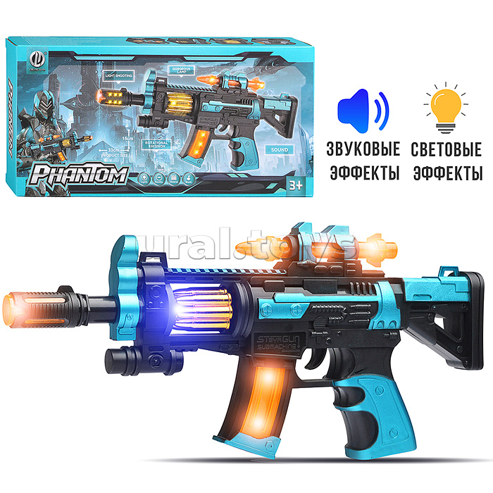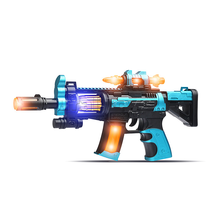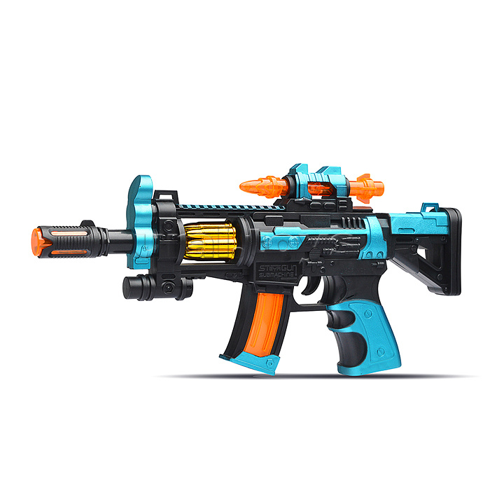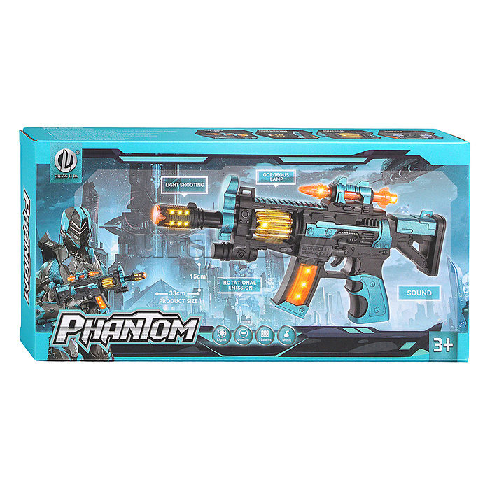 • Размеры игрушки: 32х3х15 см. • Работает от 3-х батареек "АА" (не входят в комплект) • Функции: - звуки автоматных выстрелов. - подсветка корпуса. - эффект отдачи. • Материал: пластик. • Соответствует требованиям безопасности продукции. • Для детей от 3-х лет.