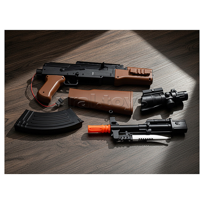 Код: 463888 Штрихкод: 4610264735295 Страна производитель: Китай Размеры упаковки: 36.9 x 28.8 x 7 см Количество в коробке: 24 • Размеры игрушки: 68.5х4х26 см. • 2 режима стрельбы: - одиночный, с ручной перезарядкой. - автоматический. • Автоматический режим работает от аккумулятора "7.4V 500 mAh" (входит в комплект) • В комплекте: - абсорбирующие шарики. - защитные очки. • Материал: пластик. • Соответствует требованиям безопасности продукции. • Для детей от 3-х лет. Комментарии к товару