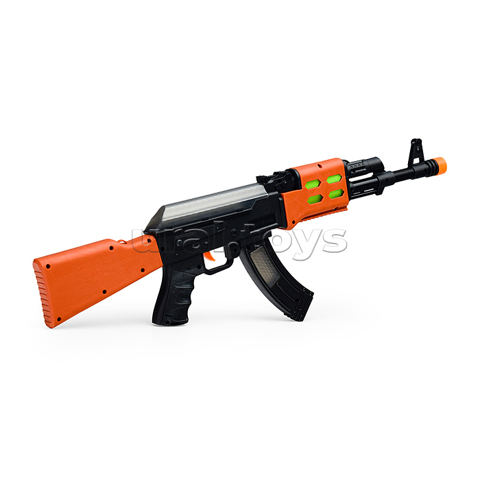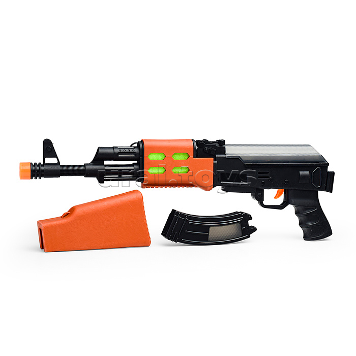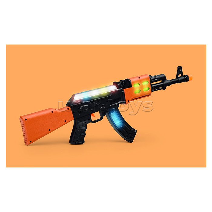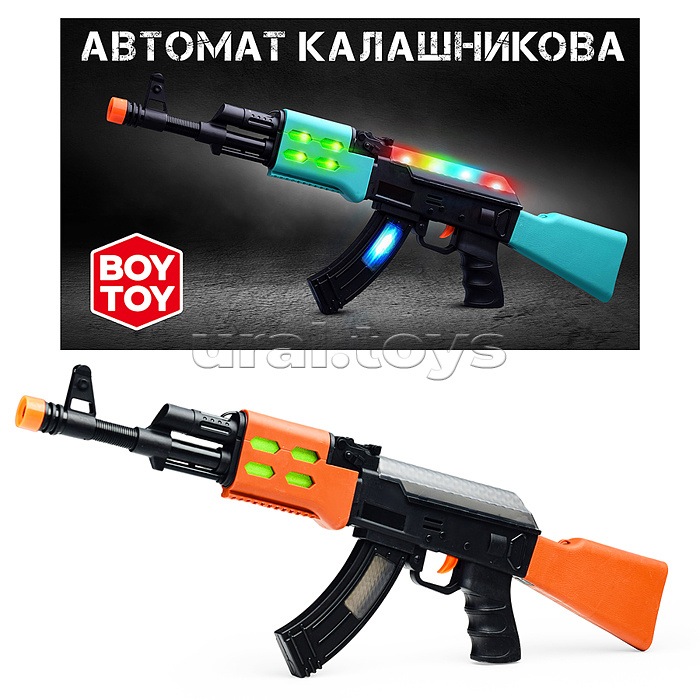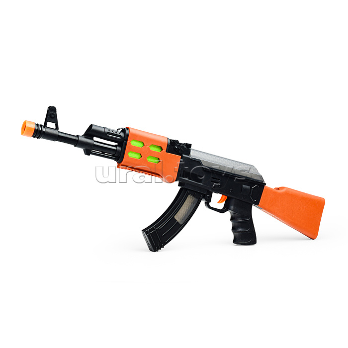 Код: 463752 Страна производитель: Китай Размеры упаковки: 44.9 x 15.2 x 4.1 см Количество в коробке: 60 • Размеры игрушки: 57х3.5х19 см. • Функции: - звуки выстрелов. - подсветка корпуса. • Работает от 3-х батареек "АА" (не входят в комплект) • Материал: пластик. • Соответствует требованиям безопасности и стандартам качества продукции. • Для детей от 3-х лет. Комментарии к товару