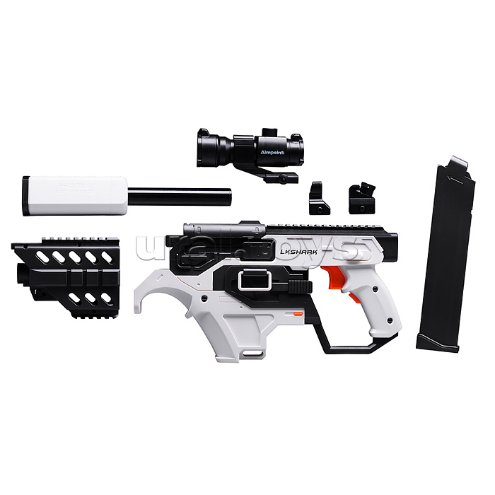 Код: 489918 Штрихкод: 6933117748364 Страна производитель: Китай Размеры упаковки: 45 x 20 x 12 см Количество в коробке: 18 • Размеры игрушки: 74х5.5х31 см. • Работает от аккумулятора "1200 mAh 3.7V" (входит в комплект) • При включении внутри работает моторчик. • При нажатии на спусковой крючок вылетает пуля, после каждого нажатия. • Съёмный оптический прицел с подсветкой (увеличение 6Х) • Свет работает от 2-х батареек "AG13" (входят в комплект) • Материал: пластик. • В комплекте: - 10 мягких пуль с присосками (3.5 см.) - 10 мягких пуль с резиновым наконечником (3.5 см.) - USB-шнур для подзарядки аккумулятора. • Соответствует требованиям безопасности продукции. • Для детей от 8 лет. Комментарии к товару
