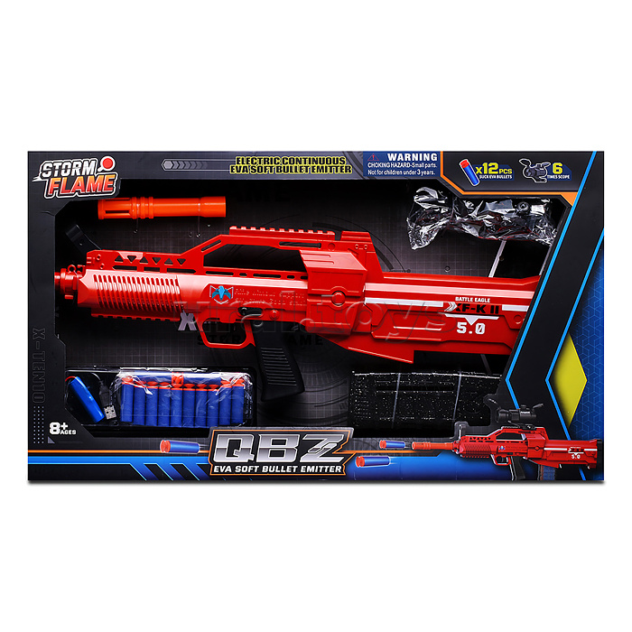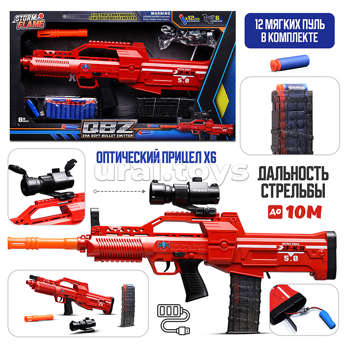 Код: 485729 Штрихкод: 6904110379282 Страна производитель: Китай Размеры упаковки: 60 x 34 x 6 см Количество в коробке: 12 • Размеры игрушки: 66х4.5х24 см. • Работает от аккумулятора "500 mAh 3.7V" (входит в комплект) • При включении внутри работает моторчик. • При нажатии на спусковой крючок вылетает пуля, после каждого нажатия. • Съёмный оптический прицел (увеличение 6Х) • В комплекте: 12 мягких пуль с присосками (4.5 см.), USB-шнур для подзарядки аккумулятора. • Материал: пластик. • Соответствует требованиям безопасности продукции. • Для детей от 8 лет. Комментарии к товару