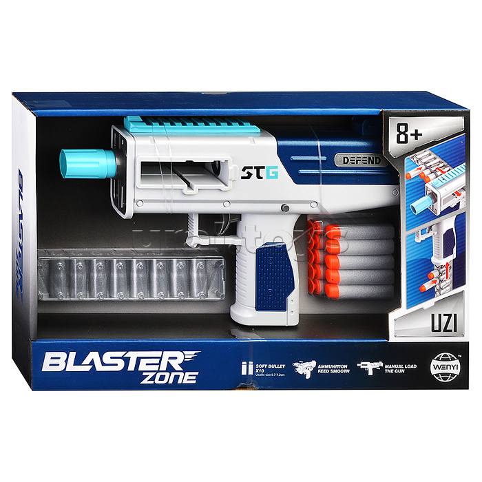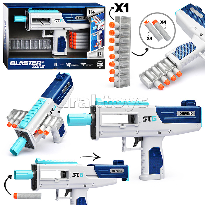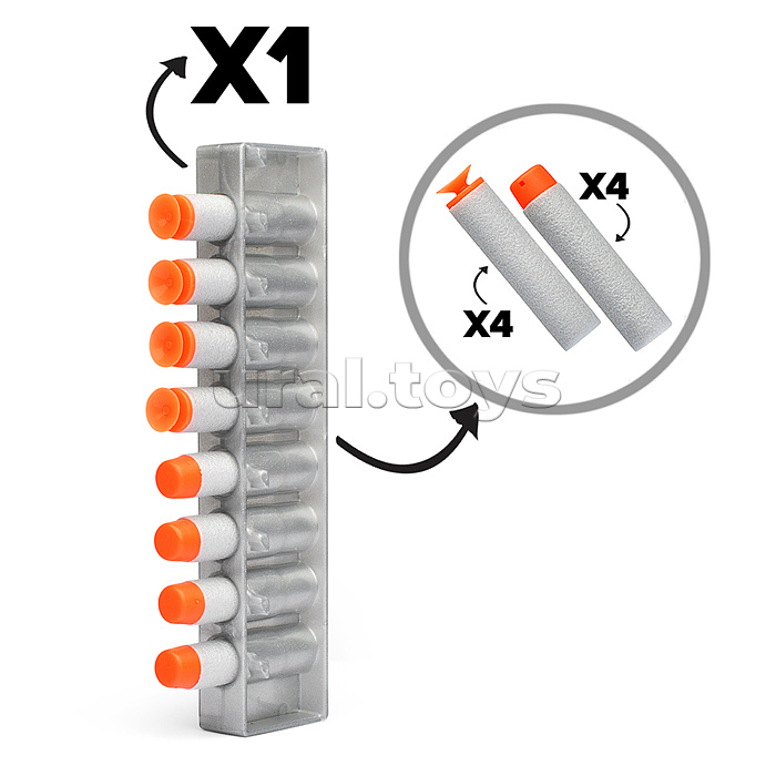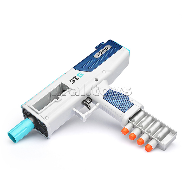 Код: 470385 Штрихкод: 6904110219021 Страна производитель: Китай Размеры упаковки: 38.2 x 23.4 x 7.2 см Количество в коробке: 30 • Размеры игрушки: 30х5.5х17 см. • Функции: - пневматический механизм стрельбы. - ручная перезарядка. • Материал: пластик. • В комплекте: - 5 мягких пуль с присосками. - 5 мягких пуль с резиновым наконечником. - магазин (8 пуль.) • Соответствует требованиям безопасности продукции. • Для детей от 8 лет. Комментарии к товару