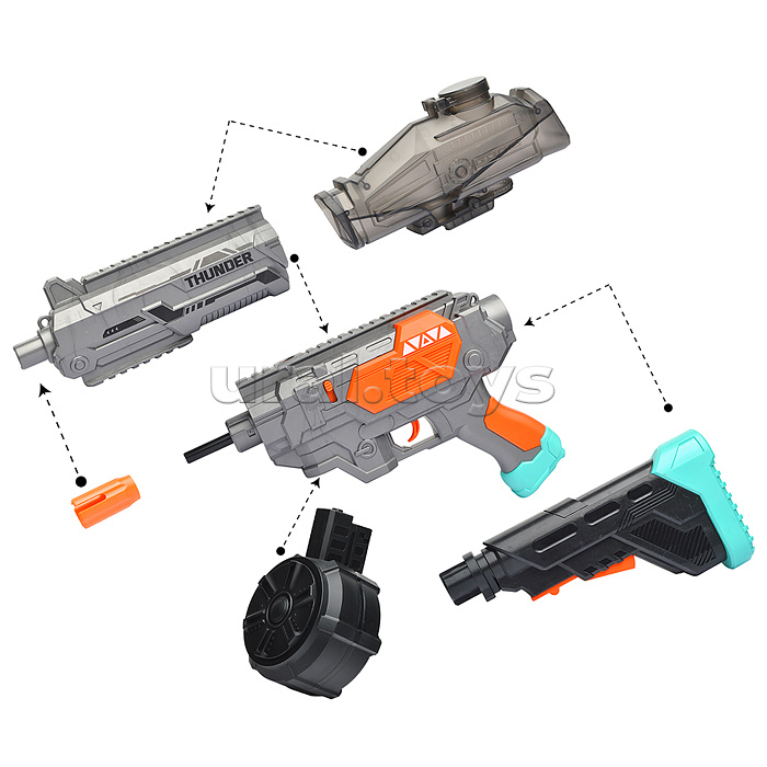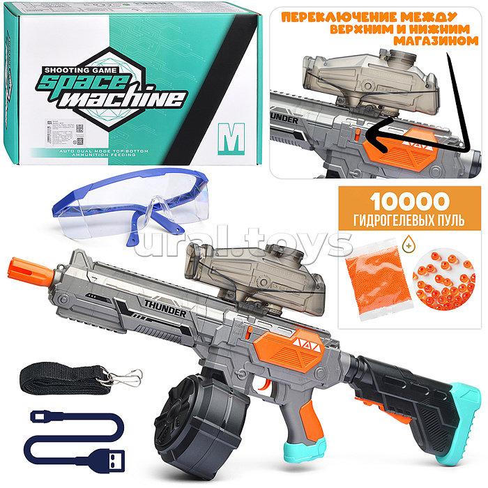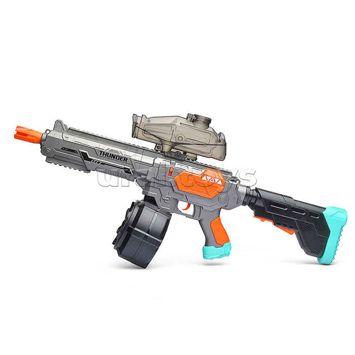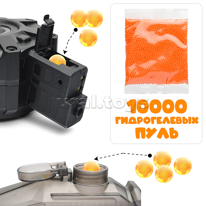 Код: 485737 Штрихкод: 6904110378735 Страна производитель: Китай Размеры упаковки: 23 x 38.5 x 9.5 см Количество в коробке: 10 • Размеры игрушки: 67х13х29 см. • Пневматический механизм. • Работает от встроенного аккумулятора. • Материал: пластик. • В комплекте: - USB-шнур для подзарядки. - шарики для изготовления водных пуль. - защитные очки. • Соответствует требованиям безопасности продукции. • Для детей от 8 лет. Комментарии к товару