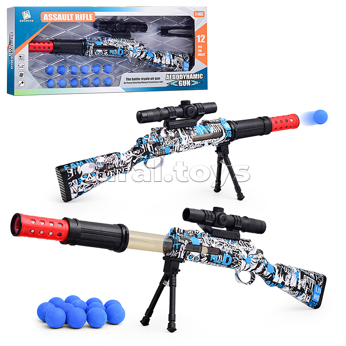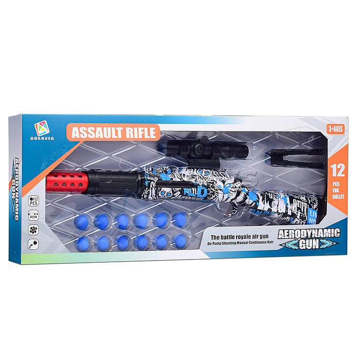 Код: 489973 Штрихкод: 6904110691698 Страна производитель: Китай Размеры упаковки: 72 x 6.5 x 27.5 см Количество в коробке: 24 • Размеры игрушки: 62х4.5х9 см. • Пневматический механизм стрельбы. • Материал: пластик. • В комплекте: - 12 мягких шариков. - подставка. - прицел. • Соответствует требованиям безопасности и стандартам качества продукции. • Для детей от 3-х лет. Комментарии к товару