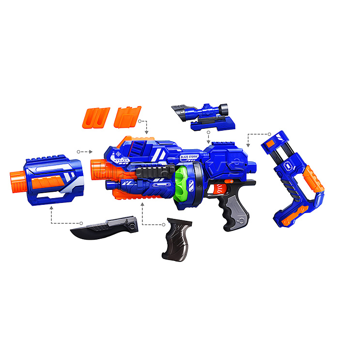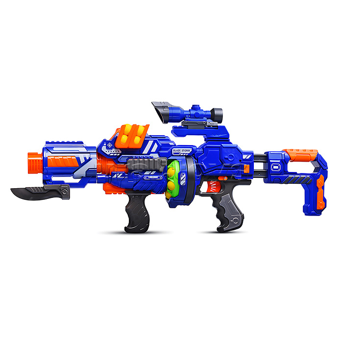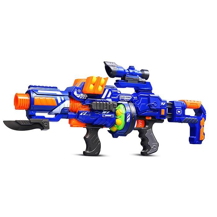 Код: 485118 Штрихкод: 6904110401563 Страна производитель: Китай Размеры упаковки: 53 x 12 x 32 см Количество в коробке: 6 • Размеры игрушки: 53х10х23 см. • Работает от 4-х батареек "АА" (не входят в комплект) • При включении внутри работает моторчик. • При нажатии на спусковой крючок вылетает пуля, после каждого нажатия. • Материал: пластик. • В комплекте 12 мягких шариков. • Соответствует требованиям безопасности продукции. • Для детей от 14 лет. Комментарии к товару