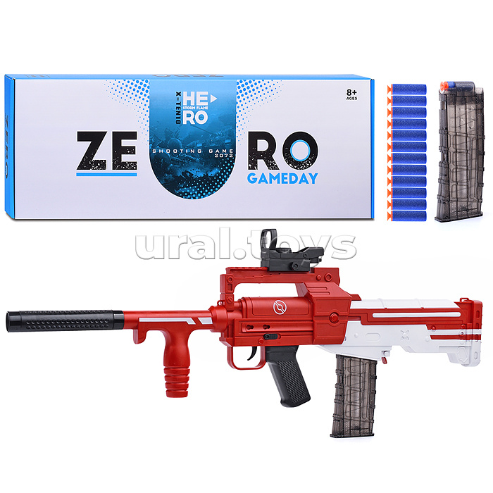 • Размеры игрушки: 58.5х5х20 см. • Пневматический механизм стрельбы. • Работает от аккумулятора "3.7V 500 mAh" (входит в комплект) • В комплекте 12 мягких пуль с присосками, USB-шнур для зарядки аккумулятора. • Размеры пуль: 45х12 мм. • Съёмные глушитель, прицел. • Материал: пластик. • Соответствует требованиям безопасности продукции. • Для детей от 8 лет.