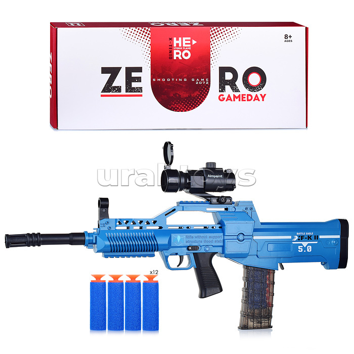Код: 399201 Страна производитель: Китай Размеры упаковки: 60 x 23 x 7 см Количество в коробке: 12 • Размеры игрушки: 66х4.5х24 см. • Работает от аккумулятора "500 mAh 3.7V" (входит в комплект) • При включении внутри работает моторчик. • При нажатии на спусковой крючок вылетает пуля, после каждого нажатия. • Съёмный оптический прицел (увеличение 6Х) • В комплекте: 12 мягких пуль с присосками (4.5 см.), USB-шнур для подзарядки аккумулятора. • Материал: пластик. • Соответствует требованиям безопасности продукции. • Для детей от 8 лет. Комментарии к товару