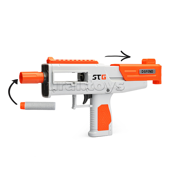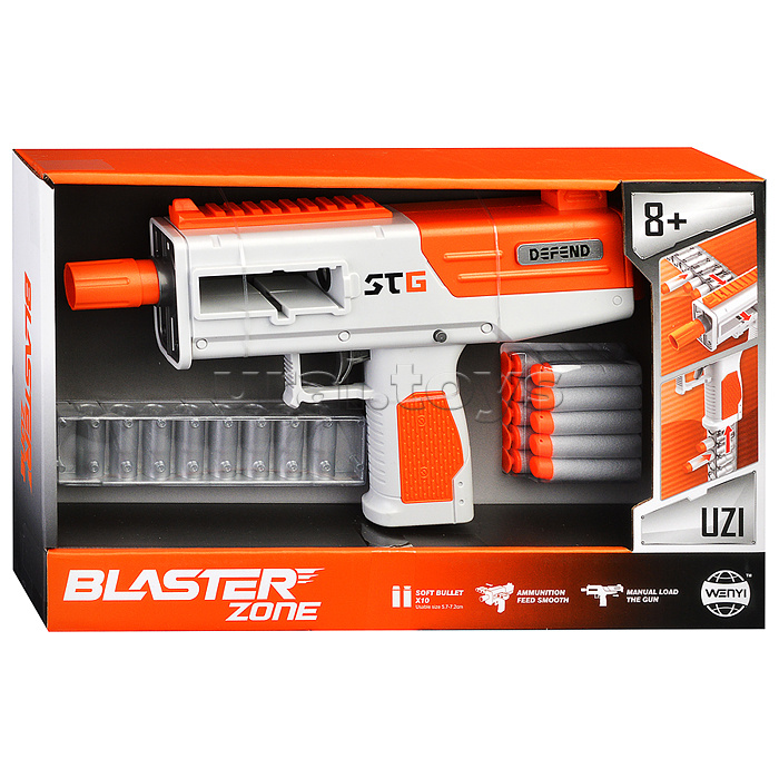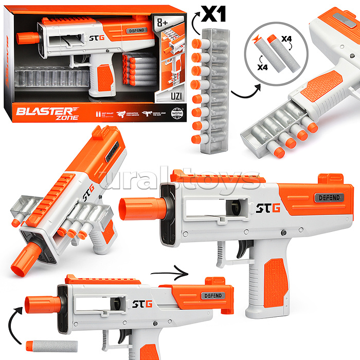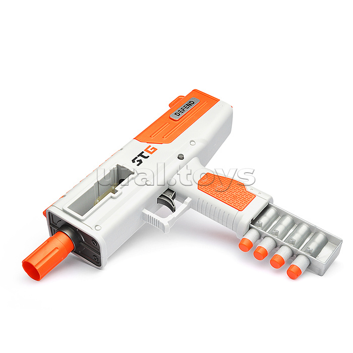 Код: 470386 Штрихкод: 6904110219014 Страна производитель: Китай Размеры упаковки: 38.4 x 23.6 x 7.2 см Количество в коробке: 30 • Размеры игрушки: 30х5.5х17 см. • Функции: - пневматический механизм стрельбы. - ручная перезарядка. • Материал: пластик. • В комплекте: - 5 мягких пуль с присосками. - 5 мягких пуль с резиновым наконечником. - магазин (8 пуль.) • Соответствует требованиям безопасности продукции. • Для детей от 8 лет. Комментарии к товару