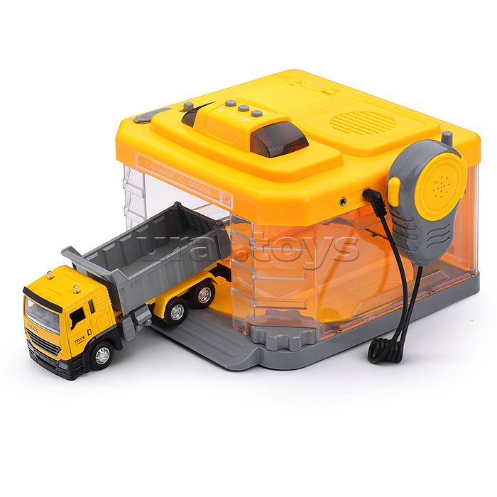 Код: 371370 Штрихкод: 6933111924634 Страна производитель: Китай Размеры упаковки: 34 x 23 x 22 см Количество в коробке: 12 Компактная многофункциональная автомойка с металлической машинкой. В отсек на крыше заливается вода, которая затем распыляется внутри эффектным туманом с объемной динамической подсветкой. Кнопки на крыше активируют звуки двигателя, клаксона, сирен с подсветкой мигалок. Платформа внутри механически вращается при помощи шестеренки. Рация выполняет свою прямую функцию - усиливает голос через динамик на крыше. Светозвуковые эффекты работают от 3-х батареек "АА" (не входят в комплект). Размер автомойки: 19 х 22 х 15 см, длина машины: 15 см. Предметы набора изготовлены из пластмассы и металла. Рекомендованный возраст: от 3-х лет. Соответствует требованиям безопасности продукции. Комментарии к товару