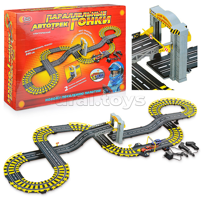 Код: 268003 Страна производитель: Китай Размеры упаковки: 59 x 12 x 40 см Количество в коробке: 6 • В наборе: - 2 гоночных машинки (10 см.); - 2 пульта управления; - блок питания; - детали для постройки трека. • Пульты управления подключаются к треку. • Машины движутся вперёд по магнитным рельсам. • Трек работает от сети. • Трек длиной 590 см имеет 2 полосы движения и имитирует настоящую автотрассу со множеством виражей и препятствий. • Материал: пластик. • Соответствует требованиям безопасности продукции. • Для детей от 3-х лет. Комментарии к товару