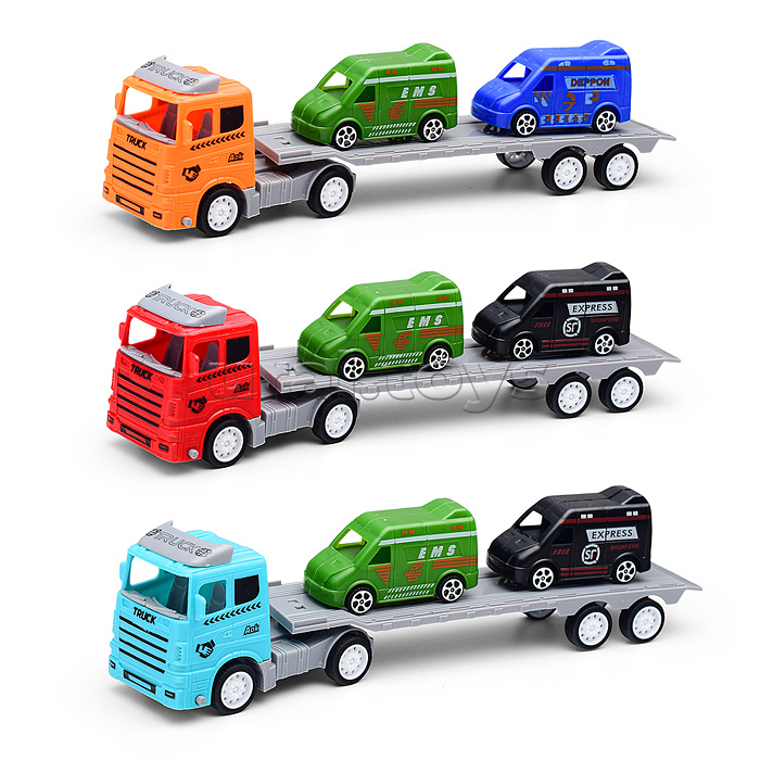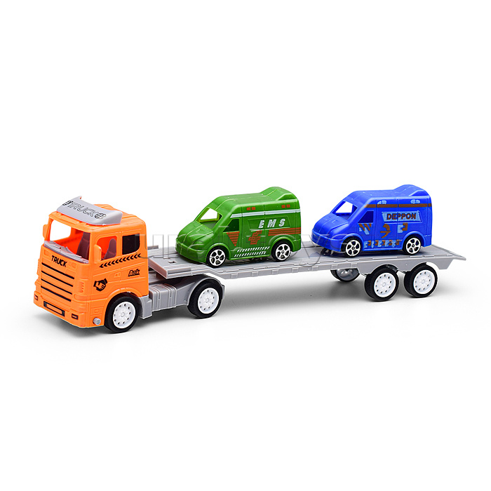 • Размеры игрушки: 30х5.5х7.5 см. • Инерционный механизм движения. • В комплекте: - 2 машинки с инерционным механизмом (8х3.5х4 см.) • Материал: пластик. • Соответствует требованиям безопасности и стандартам качества продукции. • Для детей от 3-х лет.