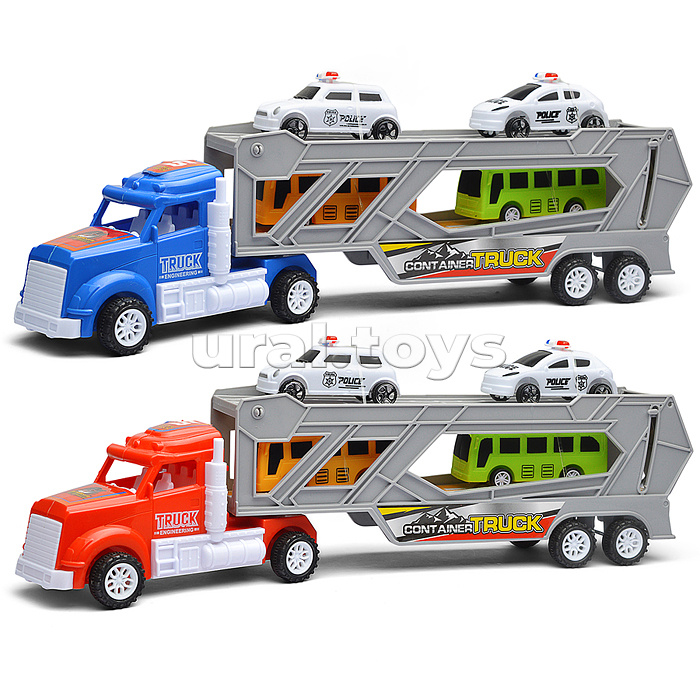 • Размеры игрушки: 39х6х10 см. • Инерционный механизм движения. • Пластиковые кузов. • В комплекте: 4 транспорта (7 см.) • Соответствует требованиям безопасности продукции. • Для детей от 3-х лет.