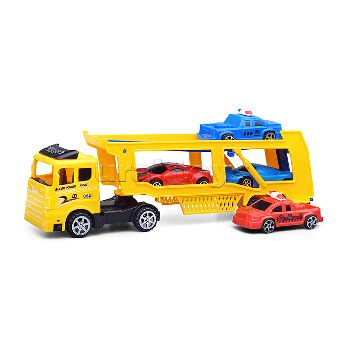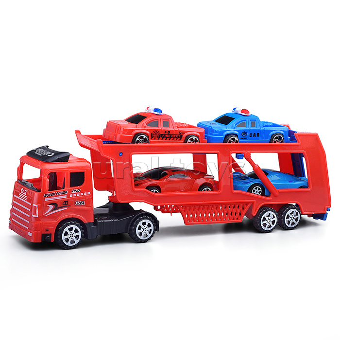 Код: 504388 Штрихкод: 6933115517009 Страна производитель: Китай Размеры упаковки: 35 x 15 x 8 см Количество в коробке: 60 • В наборе: - автовоз (29х5,5х8 см.) - 4 машины (8 см.) • Инерционный механизм у грузовика. • Материал: пластик. • Соответствует требованиям безопасности продукции. • Для детей от 3-х лет. Комментарии к товару