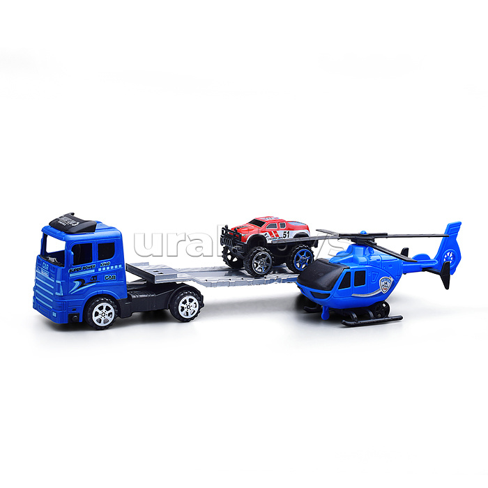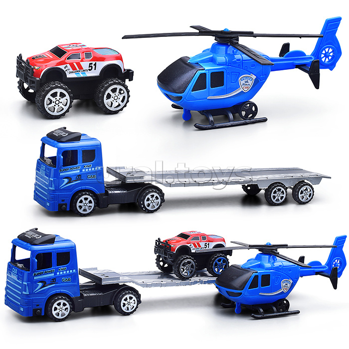 • В наборе: - грузовик (30х5,5х7 см.) - вертолёт (14х5х6,5 см.) - джип (7х4,5х4 см.) • Инерционный механизм у грузовика. • Материал: пластик. • Соответствует требованиям безопасности продукции. • Для детей от 3-х лет.