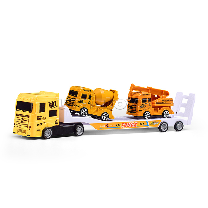 • Размеры игрушки: 36х6х7.5 см. • Инерционный механизм движения. • В комплекте: - 2 машинки со свободным ходом колёс (9х4х5 см.) • Материал: пластик. • Соответствует требованиям безопасности и стандартам качества продукции. • Для детей от 3-х лет.
