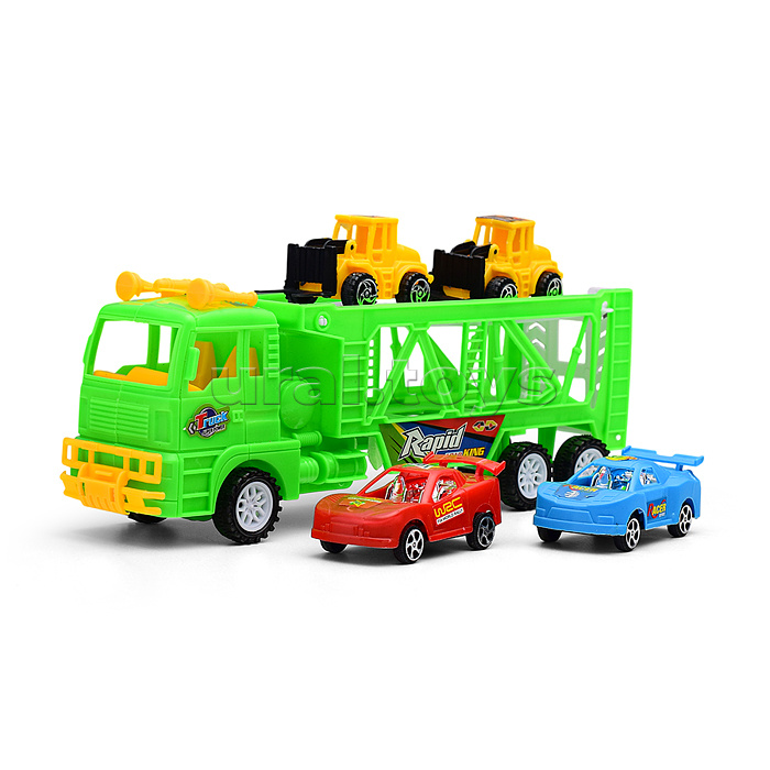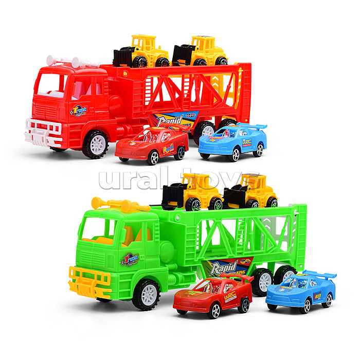Код: 495614 Штрихкод: 6933115606581 Страна производитель: Китай Размеры упаковки: 31 x 8.5 x 15 см Количество в коробке: 42 • Размеры игрушки: 29х6.5х11 см. • Инерционный механизм движения. • В комплекте: - 4 машинки со свободным ходом колёс (8.5х4х4 см.) • Материал: пластик. • Соответствует требованиям безопасности и стандартам качества продукции. • Для детей от 3-х лет. Комментарии к товару