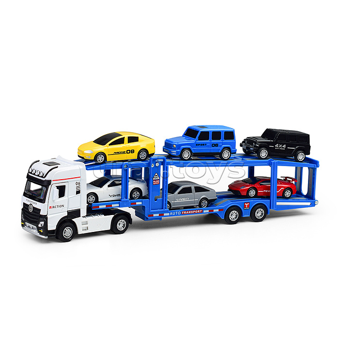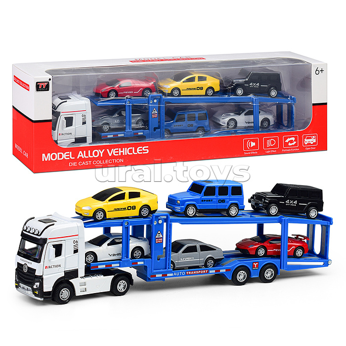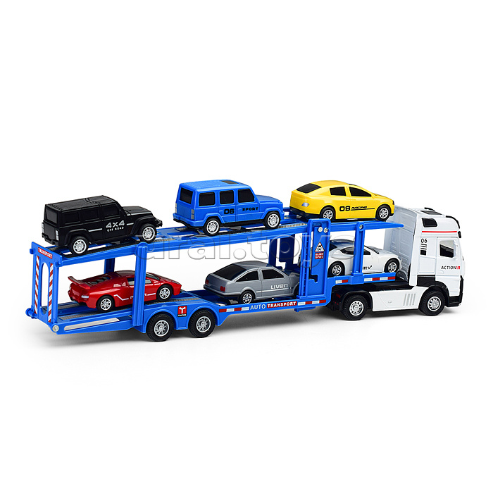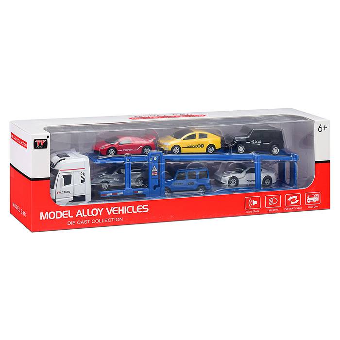Код: 501703 Штрихкод: 6933117810641 Страна производитель: Китай Размеры упаковки: 43.5 x 9.5 x 12.5 см Количество в коробке: 24 • Размеры игрушки: 36х5х9 см. • Инерционный механизм движения. • Металлический кузов. • Двери кабины открываются. • В комплекте: 6 машинок с инерционным механизмом (8 см.). • Соответствует требованиям безопасности продукции. • Для детей от 6 лет. Комментарии к товару