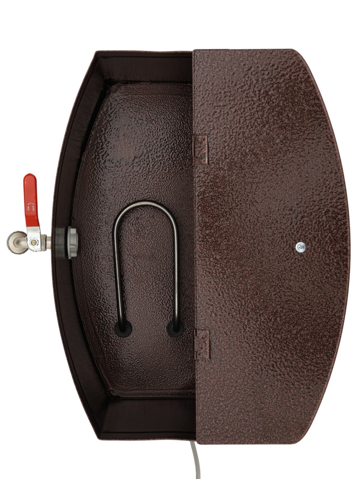 Аккуратное настенное размещение экономит пространство и делает использование максимально удобным, а медный оттенок корпуса придаёт оборудованию аккуратный технический стиль, который гармонично смотрится в хозяйственных помещениях, мастерских и на даче.
