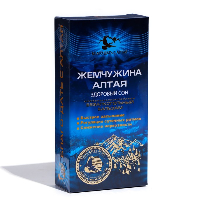 Бальзам безалкогольный "Жемчужина Алтая" Здоровый Сон 250 мл.Описание:Целебный сбор трав в бальзаме «Жемчужина Алтая» благотворно влияет на нервную систему, улучшает настроение, нормализует сон. Регулярный прием бальзама избавит вас от нервного переутомления. Состав:Плоды шиповника, трава душицы, трава пустырника, лист земляники, цвет календулы, плоды боярышника, плоды черноплодной рябины, вода очищенная, сахар песок, мед натуральный, кислота лимонная, сок черноплодной рябины. Рекомендации по применению:Употреблять по 1- 2 ч. ложки в чистом виде, с чаем, соками, минеральной водой, молоком и другими напитками. Срок годности:24 месяца. Данная продукция не является лекарственным средством.
