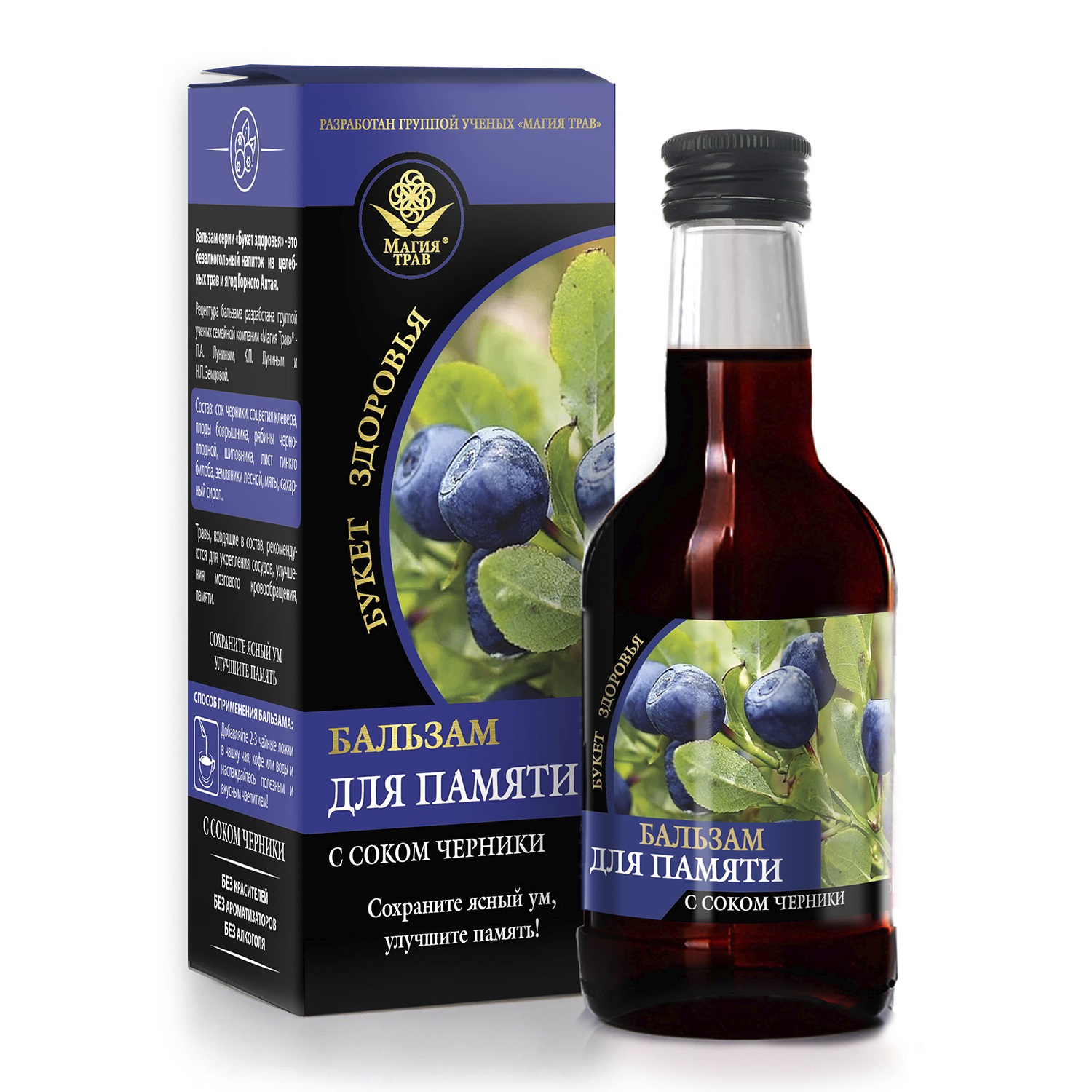 Состав: сок черники, соцветия клевера, плоды боярышника, рябины черноплодной, шиповника, лист гинкго билоба, земляники лесной, мяты, сахарный сироп.