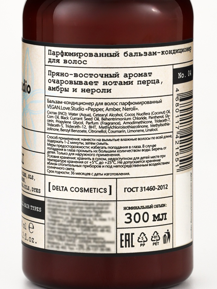 VEGAN.Love.Studio «Перец, Амбра, Нероли» — это сочетание интенсивного восстановления, ощутимого ухода и парфюмерной эстетики, которая делает волосы предметом восхищения.