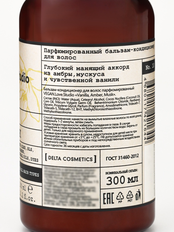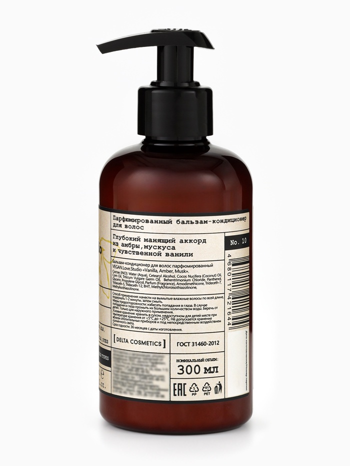 Габариты: 6,5 x 6,5 x 16 Страна: Россия В боксе: 16 шт Состав: См. на упаковке Материалы: см. на упаковке Фасовка: по 1 шт Индивидуальная упаковка: Без упаковки Сертификат: ЕАС Вес, г/Объём, мл: 300 Объём, мл: 300 Аромат: Мускус, Ваниль, Амбра Тип волос: Для всех типов Эффект: Питание, Лёгкость расчёсывания, Увлажнение, Блеск Бальзам-кондиционер для волос парфюмированный VEGAN.Love.Studio «Ваниль, Амбра, Мускус» — это гармоничное сочетание глубокого ухода и изысканного, тёплого аромата, создающего атмосферу уюта и чувственности. Формула разработана специально для восстановления, увлажнения и смягчения волос любой структуры, обеспечивая им роскошный вид уже после первого применения. Средство интенсивно питает волосы, помогает сгладить пористость, уменьшить ломкость и вернуть прядям естественный блеск. Растительные компоненты и ухаживающие экстракты создают эффект ламинирования: волосы становятся гладкими, шелковистыми и более плотными на ощупь. Бальзам облегчает расчёсывание, предотвращает спутывание, защищает волосы от пересушивания и воздействия термоукладки, сохраняя их живыми и ухоженными. Парфюмированная композиция «Ваниль, Амбра, Мускус» раскрывается мягкой сладостью натуральной ванили, которая дарит ощущение тепла и комфорта. Её обволакивающий характер идеально сочетается с глубокими, бархатистыми оттенками амбры, придающими аромату сложность и благородство. Завершает букет нежный, чувственный мускус, создающий шлейф чистоты, лёгкости и элегантности. Аромат остаётся на волосах деликатной, стойкой вуалью, подчёркивающей женственность и настроение. Продукт полностью веганский, не содержит ингредиентов животного происхождения и не тестируется на животных, что делает его идеальным выбором для тех, кто ценит этичный уход. VEGAN.Love.Studio «Ваниль, Амбра, Мускус» — это нежный, обволакивающий уход, который восстанавливает волосы, делает их роскошно гладкими и дарит тонкий, утончённый аромат на весь день. Комментарии к товару