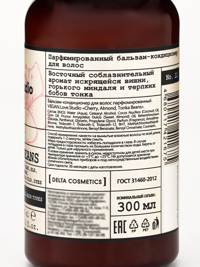 Габариты: 6,5 x 6,5 x 16 Страна: Россия В боксе: 16 шт Состав: См. на упаковке Материалы: см. на упаковке Фасовка: по 1 шт Индивидуальная упаковка: Без упаковки Сертификат: ЕАС Вес, г/Объём, мл: 300 Объём, мл: 300 Аромат: Вишня, Миндаль, Бобы тонка Тип волос: Для всех типов Эффект: Питание, Увлажнение, Блеск, Лёгкость расчёсывания Бальзам-кондиционер для волос парфюмированный VEGAN.Love.Studio «Вишня, Миндаль, Бобы тонка» — это роскошный уход, созданный для тех, кто выбирает видимый результат, ароматическую эстетику и заботу о природе. Формула сочетает в себе мощь растительных компонентов и изысканную парфюмированную композицию, превращая каждое применение в настоящий ритуал красоты. Средство интенсивно питает и восстанавливает волосы по длине, помогая сгладить повреждённую кутикулу, вернуть прядям эластичность и мягкость. Благодаря комплексу натуральных масел и растительных экстрактов волосы становятся более послушными, блестящими и защищёнными от ежедневных стресс-факторов: укладки, сухого воздуха и перепадов температуры. Лёгкая кремовая текстура быстро распределяется, не утяжеляет волосы и облегчает расчёсывание, предотвращая ломкость и спутывание. Парфюмированная композиция «Вишня, Миндаль, Бобы тонка» раскрывается сладкими фруктовыми нотами спелой вишни, плавно переходящими в тёплый ореховый аккорд миндаля, окружённый глубокими, бархатистыми оттенками бобов тонка. Этот аромат не просто сопровождает уход — он окутывает волосы тонкой, чувственной вуалью, оставаясь на них в течение дня. Продукт создан по принципам этичного ухода: не содержит компонентов животного происхождения, не тестируется на животных и подходит для веганов. Бальзам-кондиционер VEGAN.Love.Studio — ваш путь к шелковистым, ухоженным волосам и стойкому, благородному аромату, который делает образ завершённым и уникальным. Комментарии к товару