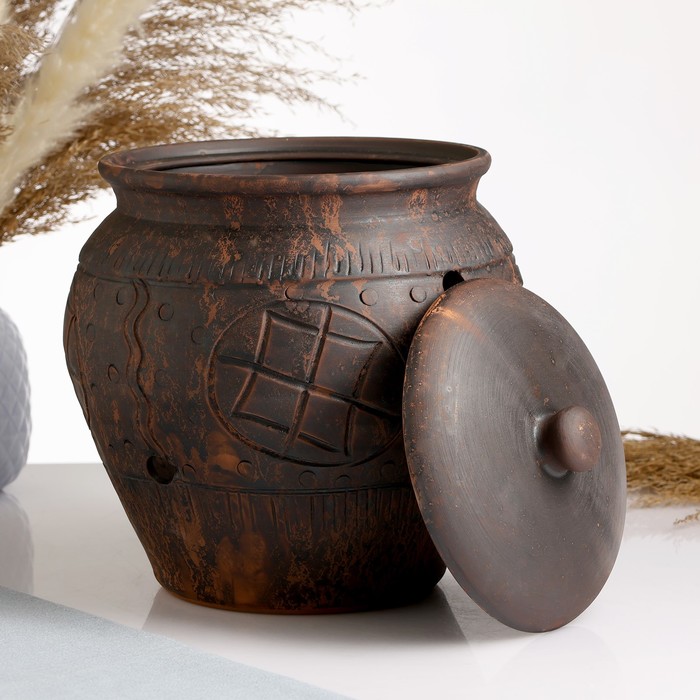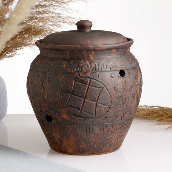 Сохраните свежесть урожая с керамической банкой "Орнамент". Этот вместительный и стильный контейнер, выполненный в традиционной молочной технике обжига, станет настоящим украшением вашей кухни или погреба.