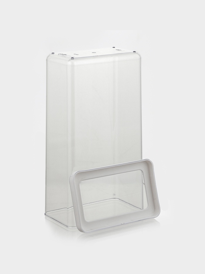 Благодаря прозрачному корпусу вы всегда будете видеть, что находится внутри ёмкости, а также контролировать количество продуктов. На корпусе может быть нанесена мерная шкала, которая поможет вам точно отмерить нужное количество продукта.